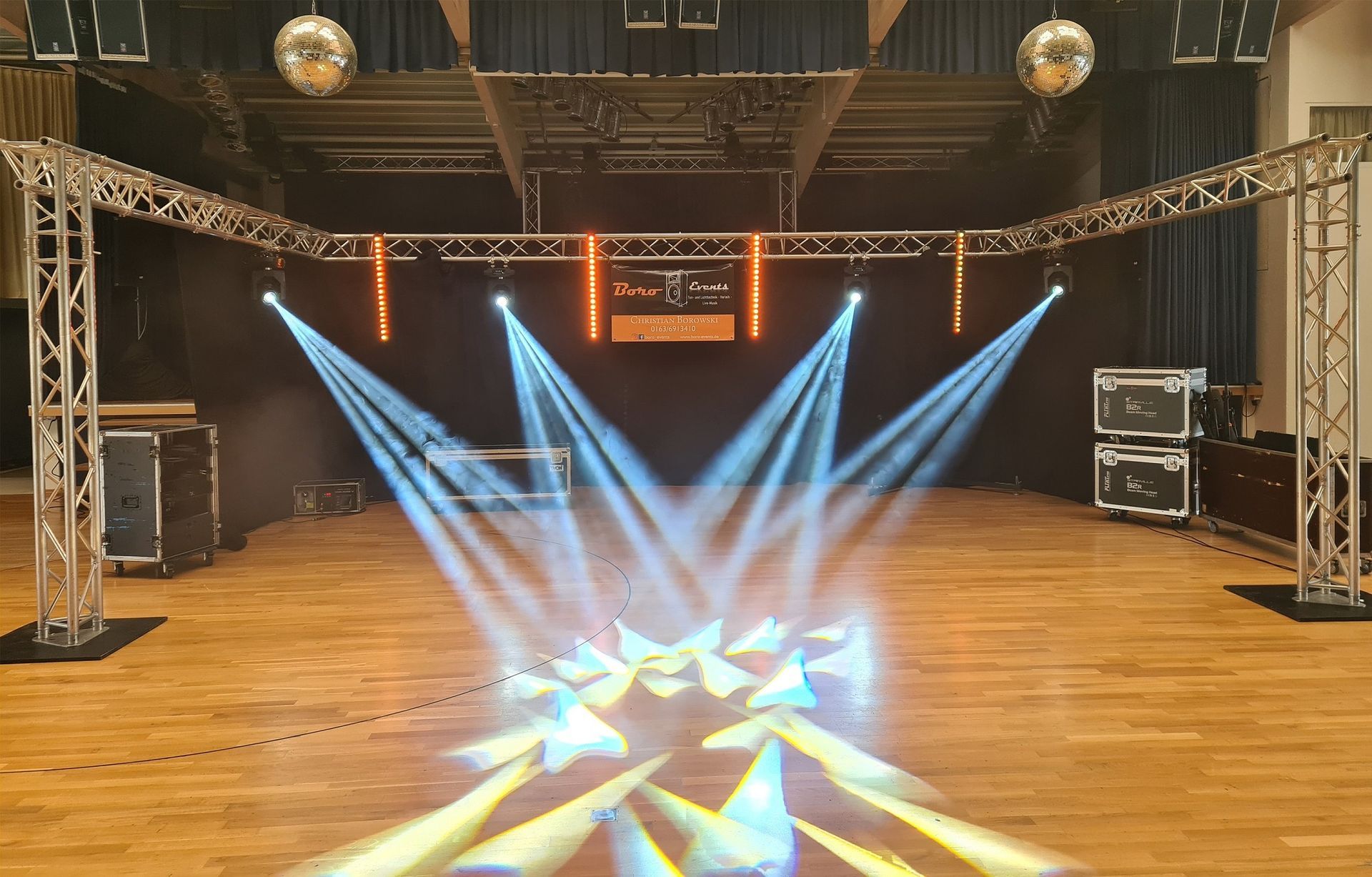 Mit bewegten Moving Heads von Stairville mit Beam-, Spot-, Gobo- und Wash-Funktionen, können wir für jede Musikrichtung die passenden Lichtverhältnisse schaffen.