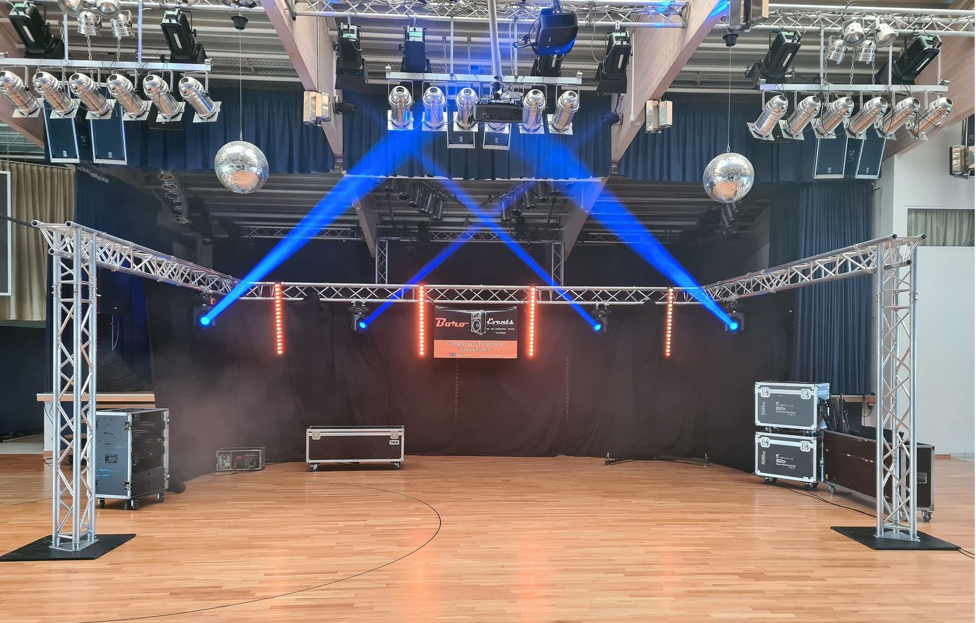 - Unser Bühnenaufbau in U-Form umrahmt die Bühne und setzt jede Show in den richtigen Fokus!